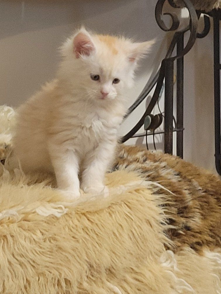 Welcome to Donnelly Maine Coons! DMC Cattery began in early 2020. Our Maine Coon kittens are socialized, and used to playing with my grandkids, which leads to good interactions with other people. The kittens are raised in our home along with our Yorkie named Coco. in the cattery. Queen Sahara was bred with another European Maine Coon, King Mufaso, both TICA registered cats, for its first litter born on April 12, 2021, of five beautiful kittens. Our Maine Coon kittens have beautiful tufted Lynx-like ears, boxy faces, are big boned, and have exotic colors and patterns.