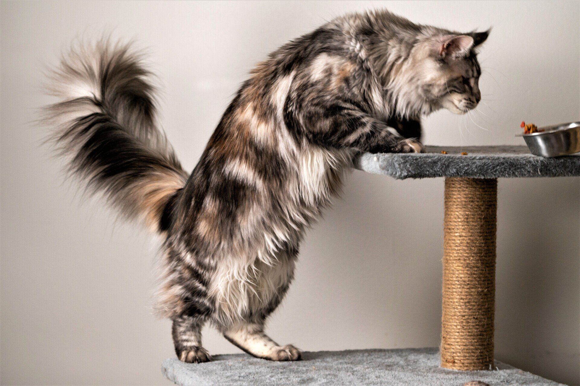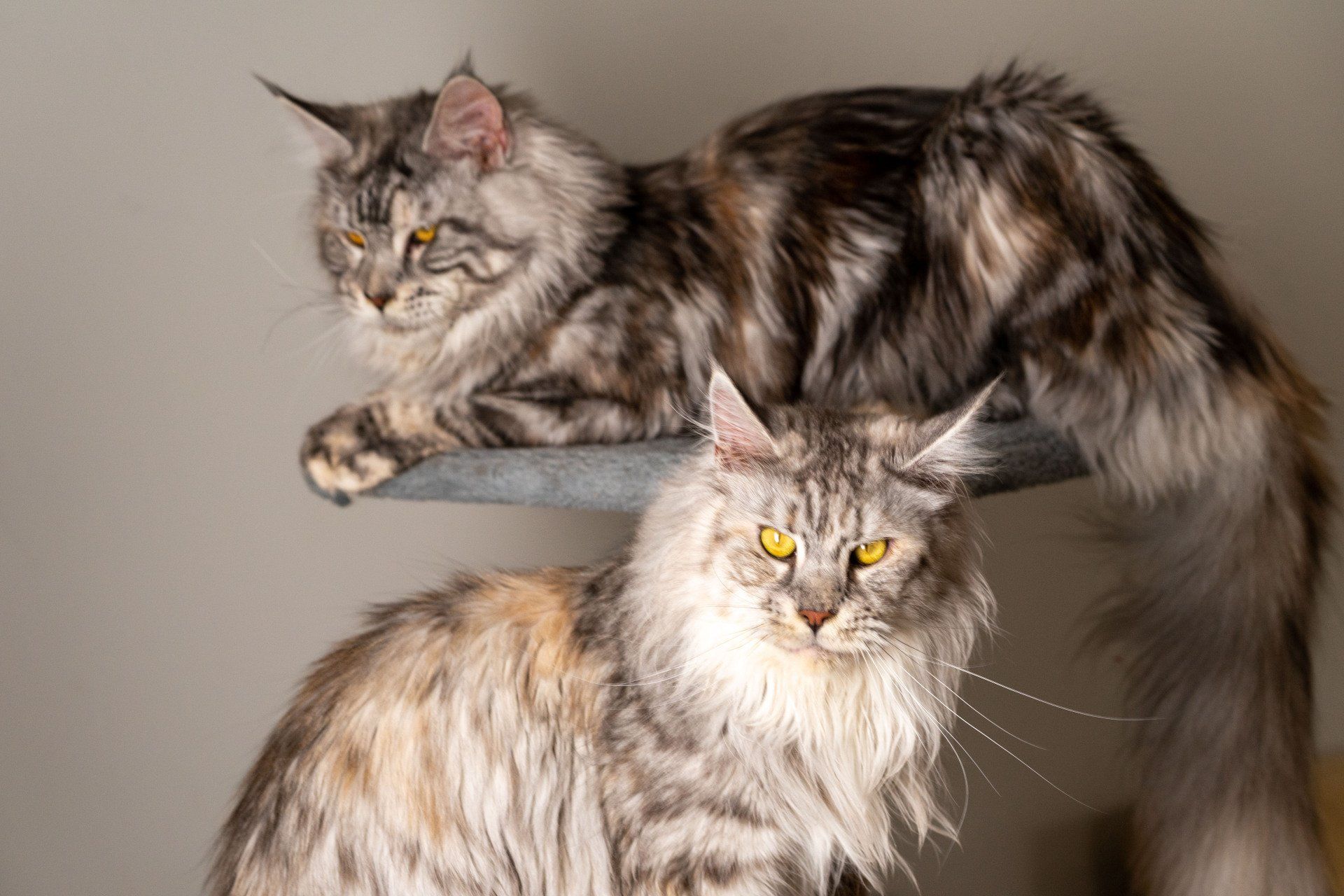 Maine Coon cats are known as the “gentle giants”, because they grow up to weight between 12-25 pounds, with a height of 10-16 inches. They continue growing until they are 18-24 months old.